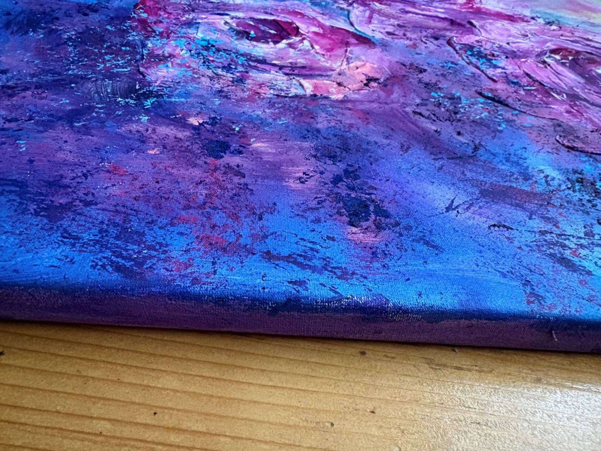 This painting was born from the artist’s intuitive dialogue with nature — a meditation on resilience, renewal, and the invisible energy that connects all living things. The flowers do not merely bloom; they breathe, reaching toward the sky as if seeking freedom and grace.
